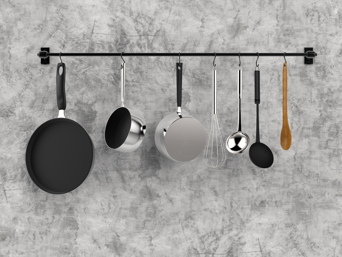 Para esse momento, nada melhor do que ganchos, prateleiras e adesivos nas paredes. Aqui, há uma liberdade maior para inovar e é preciso usar as paredes de forma estratégica. Por exemplo, a parede em cima da pia deve ter elementos que sejam compatíveis com as atividades desempenhadas ali.
