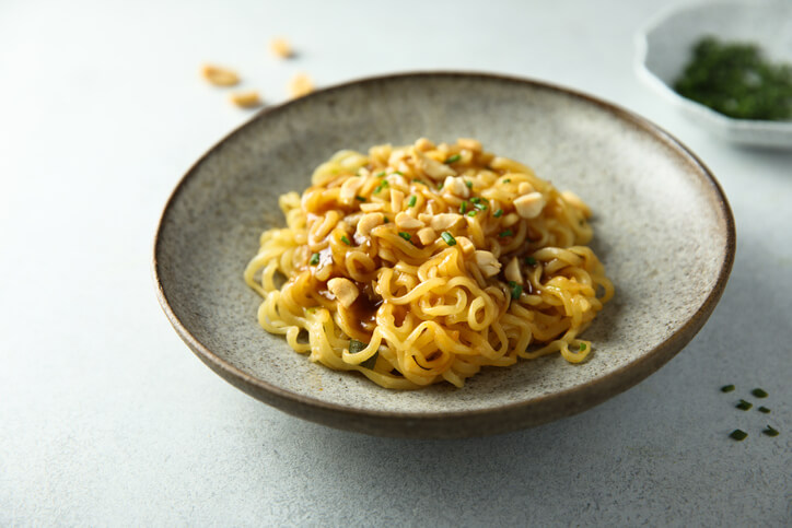 - Faça um pequeno corte na embalagem do macarrão instantâneo e retire o sachê de tempero;