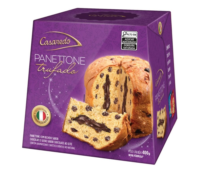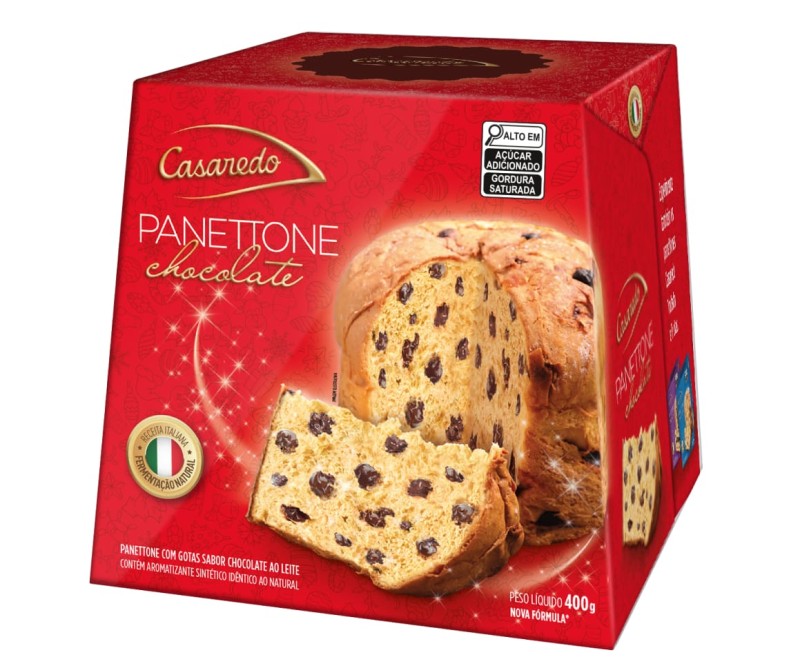 O Panettone Casaredo com Gotas de Chocolate traz uma explosão de sabor e textura que agrada todos os chocólatras.